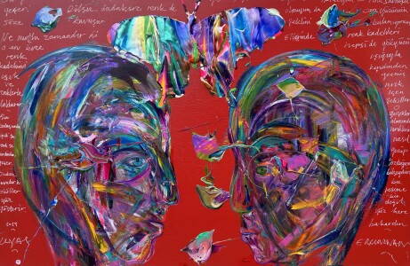 "İkili Yüz" Tuval üzerine karışık teknik, 100x150cm. 2024