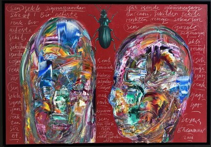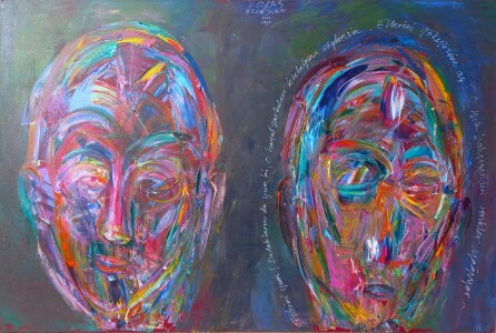 "İkili Yüz" Tuval üzeri karışık teknik, 100x150cm. 2023
